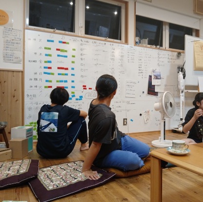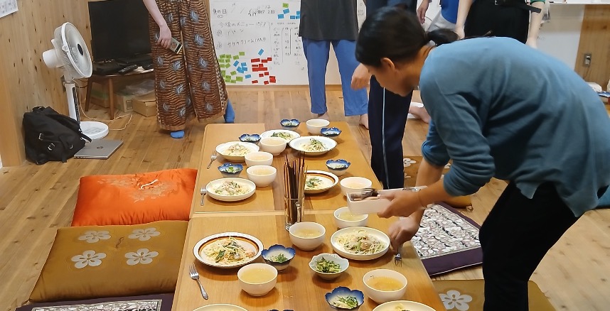 Surrounded by inspiring examples of economic resilience through small scale hospitality enterprise projects such as Kamiyama Beer, and Kamaya Food Hub, one of the highlights of my first week here is visiting the highly progressive Josei Kamiyama High School, where the hands, head and heart approach to learning is very much akin to Schumacher College’s own educational ethos, though adapted for younger learners. Here, students of between 15-17 years old live in shared housing of up to twenty residents, where they maintain their own governance, deciding autonomously on cooking and cleaning duties, generating weekly menu’s and organising food budgets, as well as implementing shared cooking, cleaning and gardening rotas. Apart from their daily formal studies, the students are engaged in a diverse array of regenerative agriculture projects, working with cross generational approaches, such as learning traditional indigo dyeing, as well as experimenting with new permaculture techniques, tending to a 5x acre patch of reclaimed forestland (the main challenge here being postwar reforestation and the overpopulation of fast yield cedar trees and their environmental concerns).